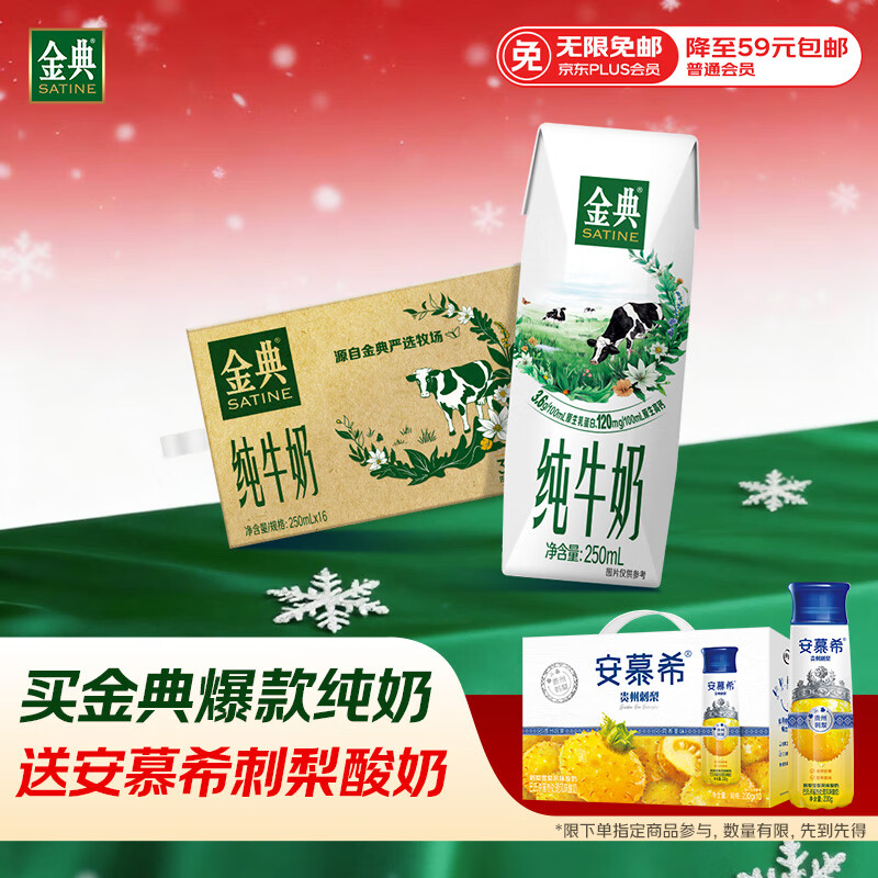 包邮 伊利金典纯牛奶250ml*16盒 下单送安慕希刺梨酸奶高端礼盒装
